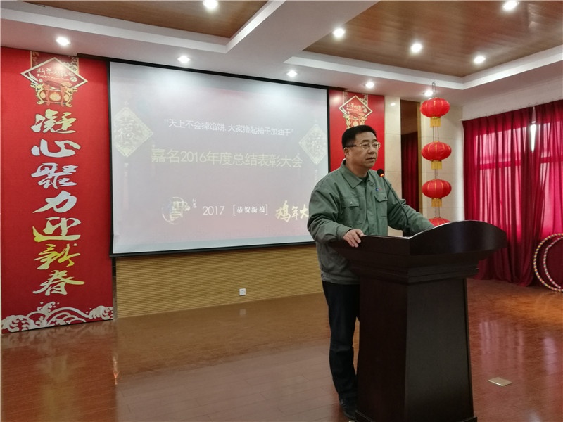 莫總強(qiáng)調(diào),2017年國(guó)內(nèi)外市場(chǎng)形勢(shì)仍然十分嚴(yán)峻復(fù)雜,不確定因素依然存在,同業(yè)競(jìng)爭(zhēng)會(huì)越來越激烈,客戶的要求和期望會(huì)越來越高。但是宏觀環(huán)境有利于嘉名的因素也很多,國(guó)家加大實(shí)體經(jīng)濟(jì)支持力度,加大供給側(cè)改革,加大環(huán)境治理,這些給我們嘉名將帶來更多的積極因素。我們有理由相信,2017年將是極不平凡的一年,只要我們堅(jiān)定信心,積極應(yīng)對(duì),齊心協(xié)力,奮力拼搏,必將會(huì)形成機(jī)遇大于挑戰(zhàn),優(yōu)勢(shì)大于劣勢(shì),動(dòng)力大于壓力,希望大于困難的良好局面。為此,我由衷地希望公司上下團(tuán)結(jié)一心,“大家擼起袖子加油干”, 苦干實(shí)干加巧干,不斷突破,不斷超越,為全面完成2017年的各項(xiàng)經(jīng)營(yíng)目標(biāo)任務(wù),繼續(xù)走在行業(yè)前列作出共同努力!