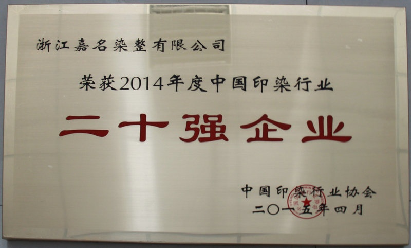 浙江嘉名染整有限公司獲“2014年度中國印染行業企業20強” 2015-04-15 00:00:00 浙江嘉名染整有限公司 瀏覽次數 1456 4月14日下午,在中國印染行業協會五屆三次理事擴大會議暨五屆四次常務會議上,浙江嘉名染整有限公司榮獲“2014年度中國印染行業企業20強”。 上一條中國印染行業協會會長陳志華蒞臨嘉名公司走訪調研 下一條公司重獲“桐鄉市十大突出貢獻工業企業”殊榮