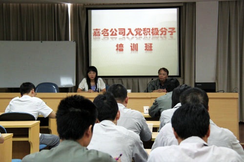 10月份,鳳鳴街道黨委為嘉名公司專門舉辦了一期入黨積極分子培訓班。10月17日下午,在嘉名公司黨員活動中心舉辦了入黨積極分子專題講課,鳳鳴街道黨委組織委員吳亞萍給22名入黨積極分子進行了授課,她從舉辦入黨積極分子培訓班的意義、黨的基本知識、如何做一名合格的黨員等五個方面進行講解,使全體學員受到了教育,提高了對黨的認識和黨的基本知識的了解,端正了入黨的動機,增強了在思想上、行動上入黨的自覺性。