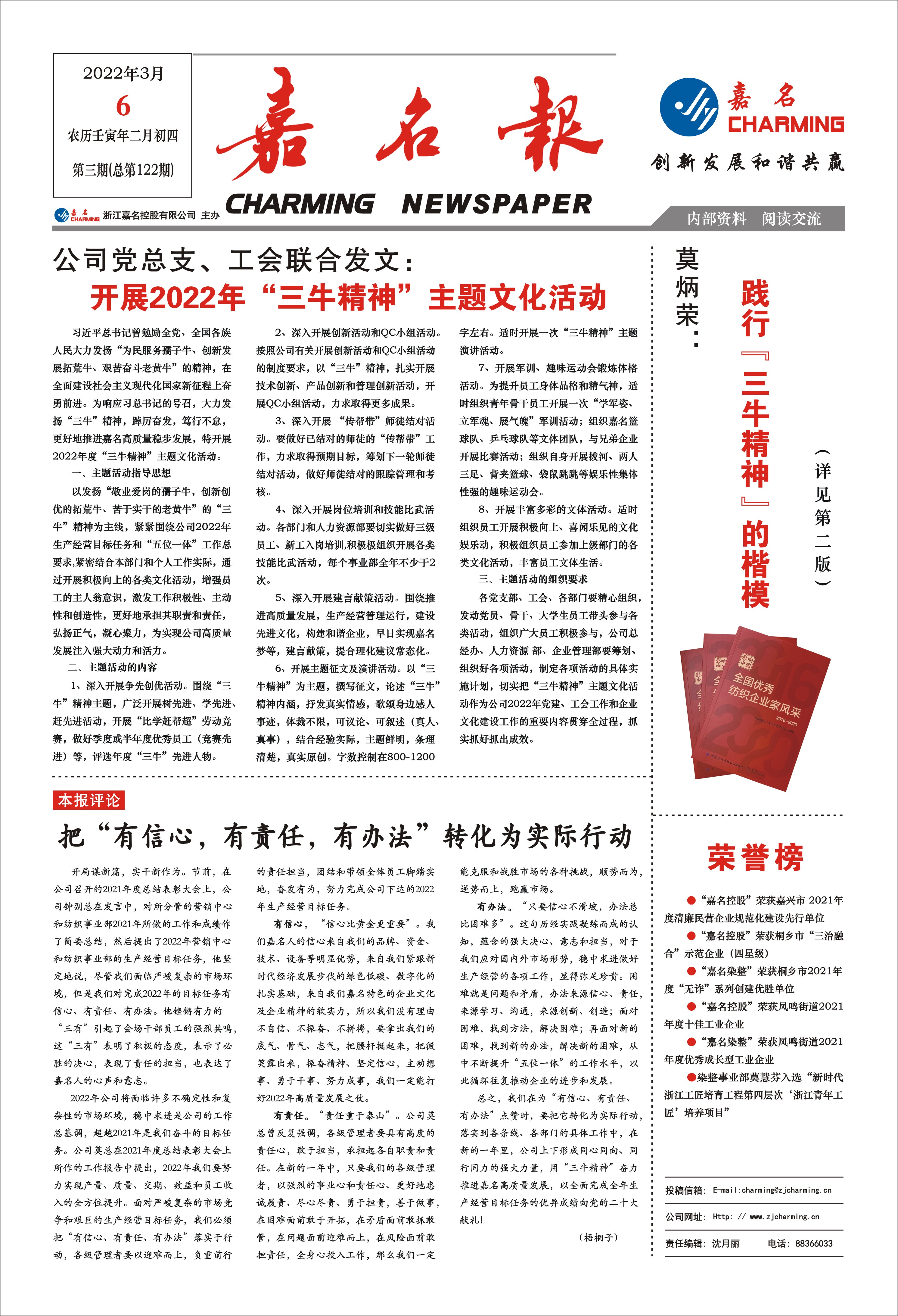 以發揚“敬業愛崗的孺子牛,創新創優的拓荒牛、苦于實干的老黃牛”的“三牛”精神為主線,緊緊圍繞公司2022年生產經營目標任務和“五位一體”工作總要求,緊密結合本部門和個人工作實際,通過開展積極向上的各類文化活動,增強員工的主人翁意識,激發工作積極性、主動性和創造性,更好地承擔其職責和責任,弘揚正氣,凝心聚力,為實現公司高質量發展注入強大動力和活力。